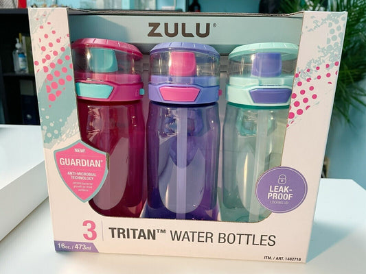 ZULU Tritan Leak-Proof Water Bottles-3 Pack (16 oz/473ml Each)